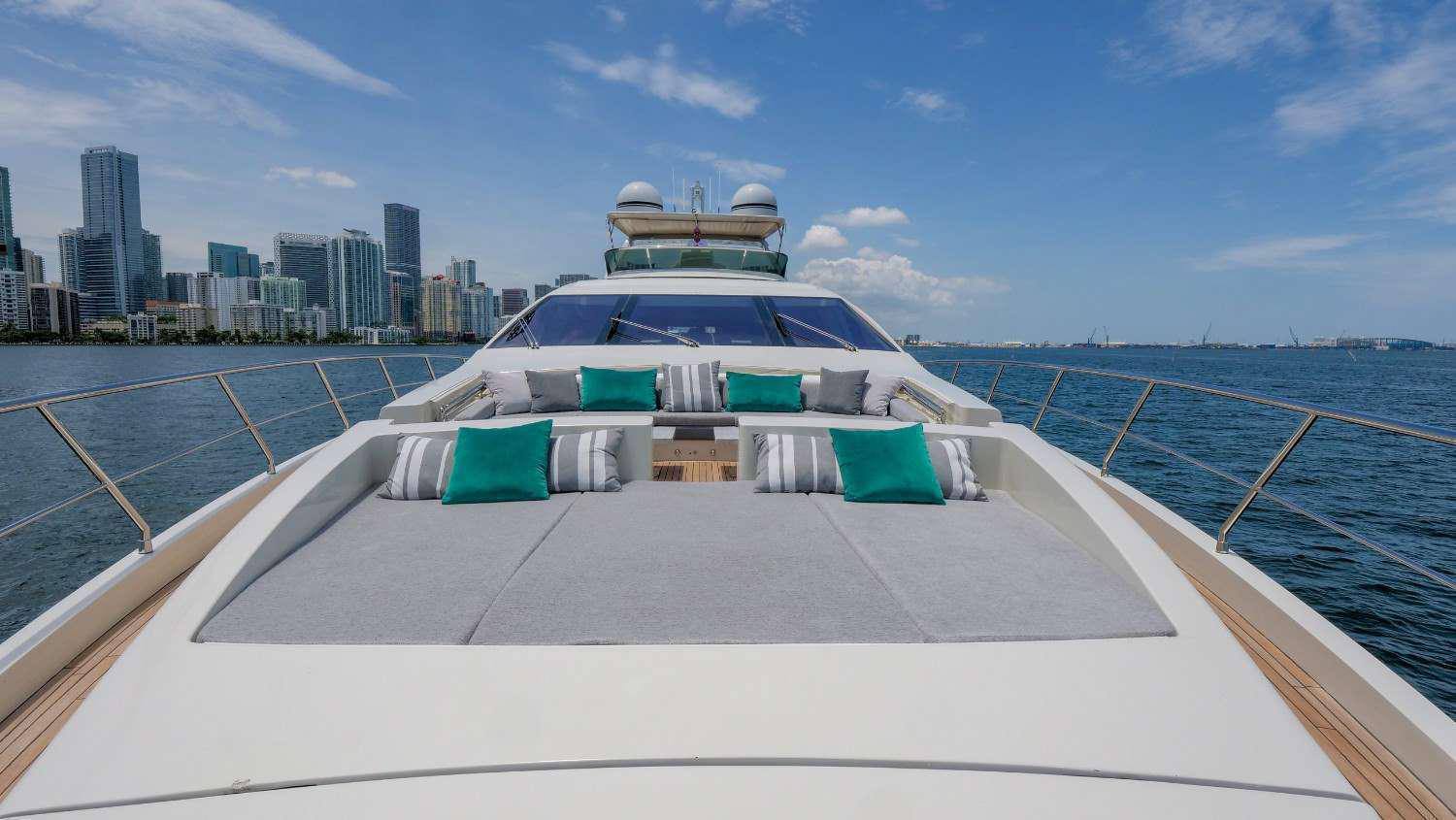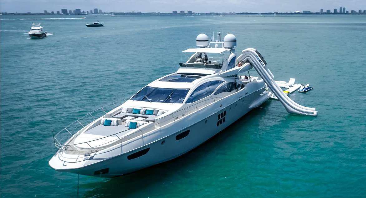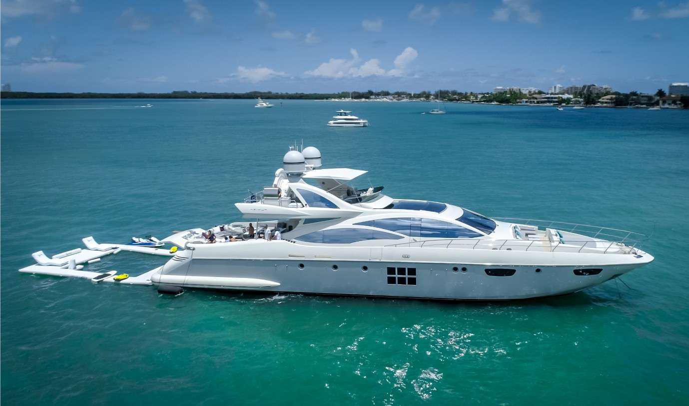 This gorgeous Miami mega yacht has it all. The 103’ Azimut represents one of the best performance motor yachts available today. She blends timeless style with the perfect layout for relaxing / entertaining on board. Her expansive aft deck is sure to impress with extended lounge seating and dining areas as well as an adjoining salon bar. The well laid out flybridge and bow seating areas offer further dining and sunbathing facilities for the owner and guests to enjoy but with added privacy.  This Miami yacht charter comes with a 2 jet skis, and the best mega yacht water toys in business. Get ready to be treated like royalty by captain and crew aboard this amazing motor yacht in Miami.