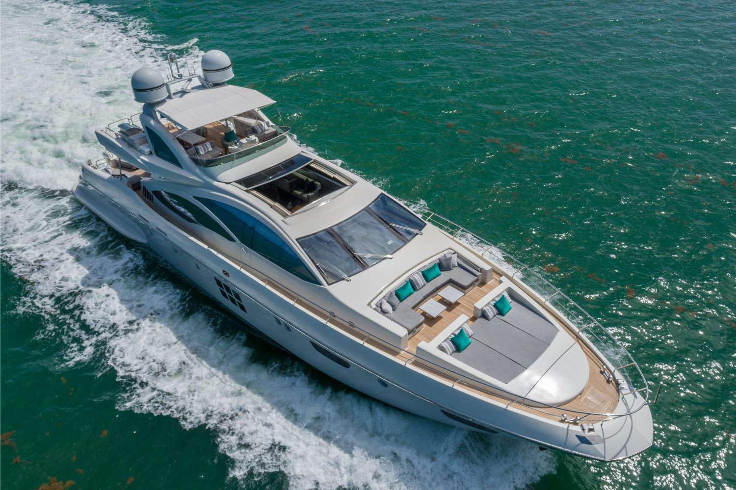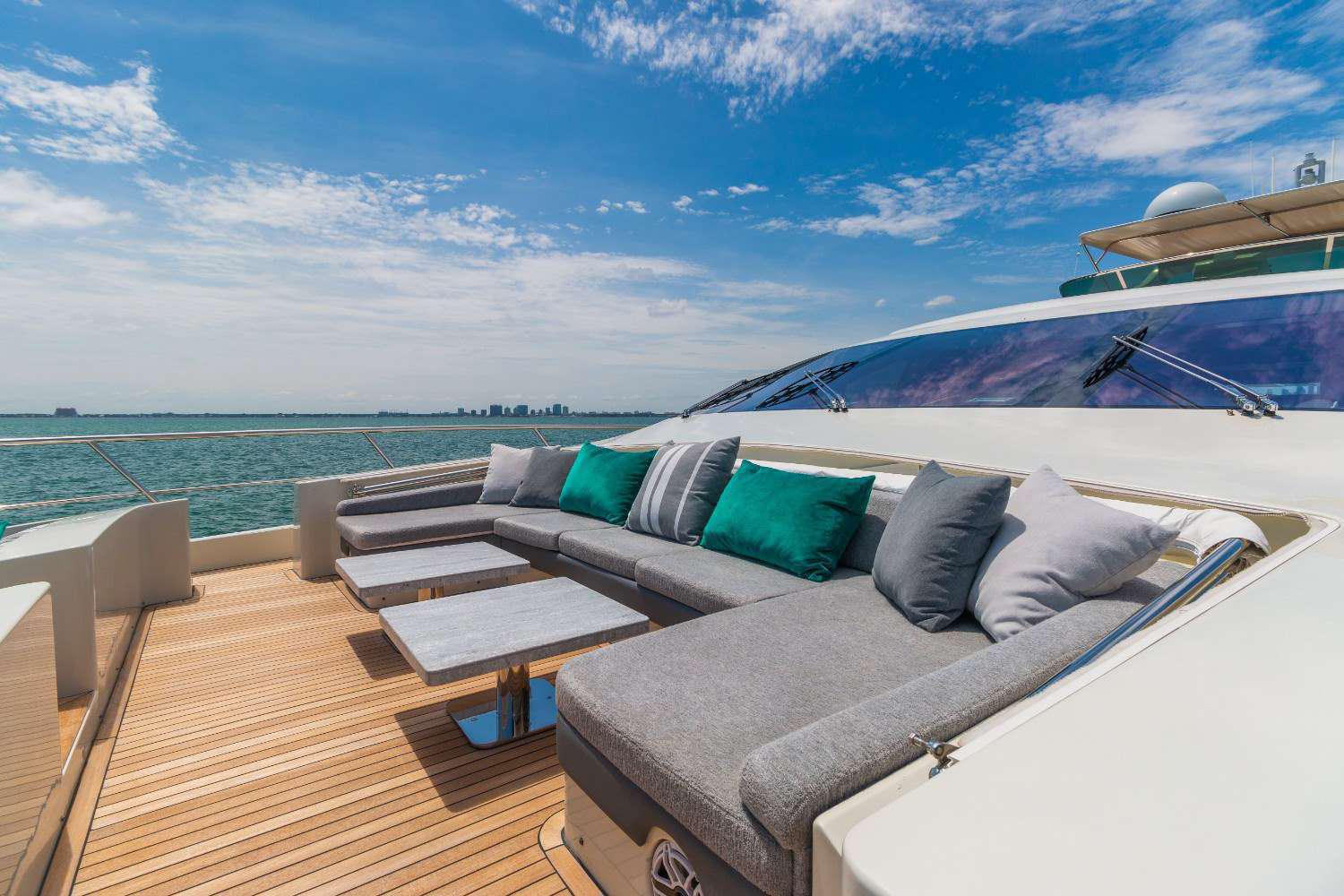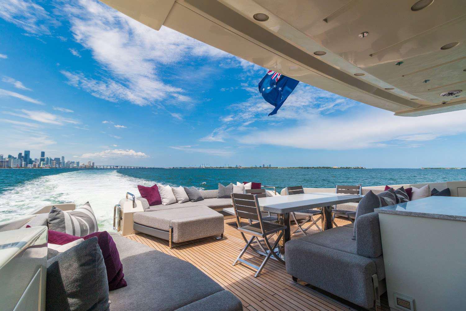 This gorgeous Miami mega yacht has it all. The 103’ Azimut represents one of the best performance motor yachts available today. She blends timeless style with the perfect layout for relaxing / entertaining on board. Her expansive aft deck is sure to impress with extended lounge seating and dining areas as well as an adjoining salon bar. The well laid out flybridge and bow seating areas offer further dining and sunbathing facilities for the owner and guests to enjoy but with added privacy.  This Miami yacht charter comes with a 2 jet skis, and the best mega yacht water toys in business. Get ready to be treated like royalty by captain and crew aboard this amazing motor yacht in Miami.