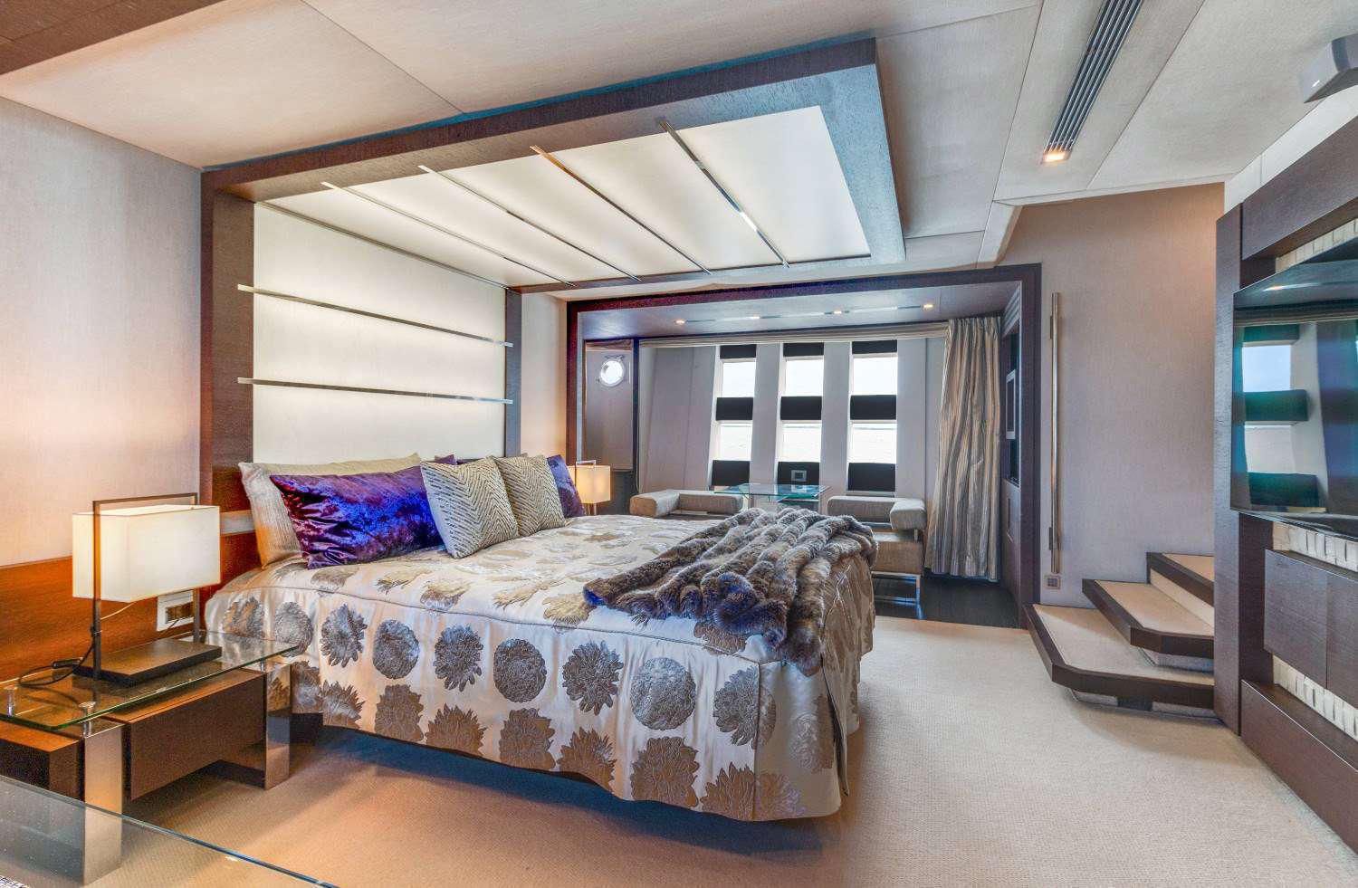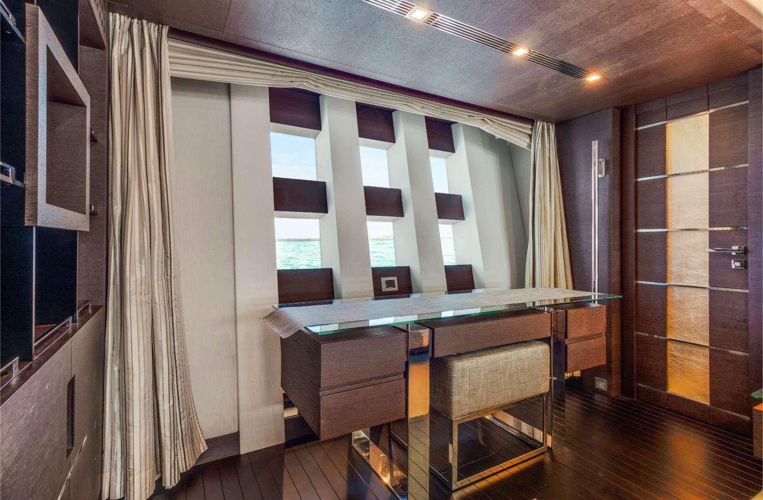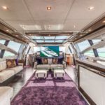 This 103 Azimut’s interior layout sleeps up to 7 guests in 3 rooms, including a Full BEam master suite, upgraded VIP suite featuring a queen bed, and stateroom featuring 3 single beds. She has 4 crew onboard to ensure a relaxed luxury yacht experience. Timeless styling, beautiful furnishings and sumptuous seating feature throughout to create an elegant and comfortable atmosphere.The Azimut’s impressive leisure and entertainment facilities make her the ideal charter yacht for SOCIALIZING and entertaining with family and friends.