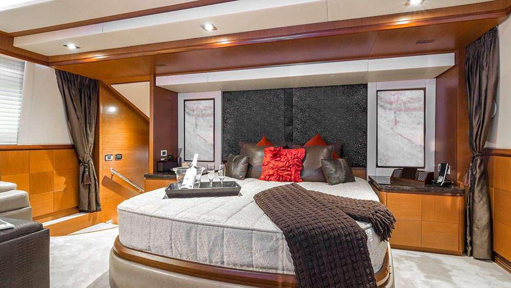 This 105 Azimut’s interior layout sleeps up to 10 guests in 5 Staterooms. She features a Full BEam master suite, 2 upgraded VIP suites featuring a queen beds, and 2 stateroom featuring 4 single beds. She can have 4 crew onboard to ensure a relaxed luxury yacht experience. Timeless styling, beautiful furnishings and sumptuous seating feature throughout to create an elegant and comfortable atmosphere.The Azimut’s impressive leisure and entertainment facilities make her the ideal charter yacht for SOCIALIZING and entertaining with family and friends.