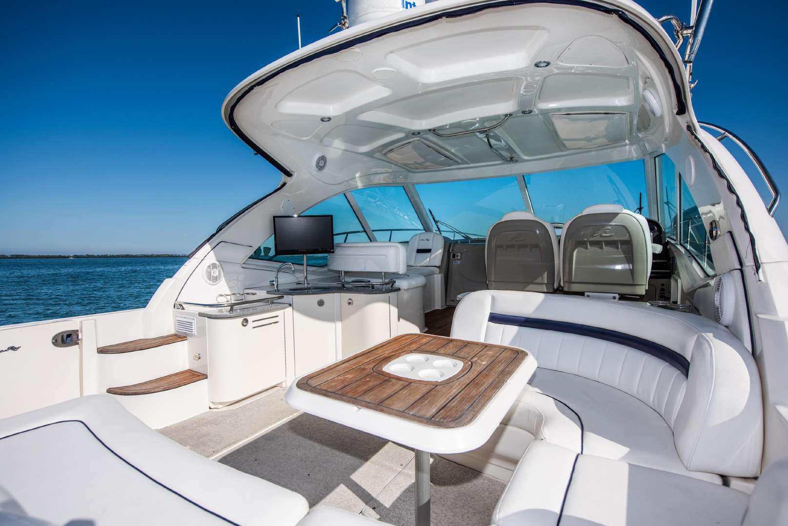 The Ideal blend of luxury Yacht and sport Cruiser. The 48 ft Sea Ray Sundancer has 2 staterooms, 2 bathrooms, kitchen and lounge. Its interior cabin areas are all fully air-conditioned. It’s large outdoor seating areas and sun pads are perfect to relax on while gliding through the warm waters of Miami.