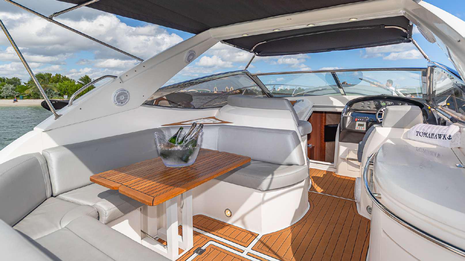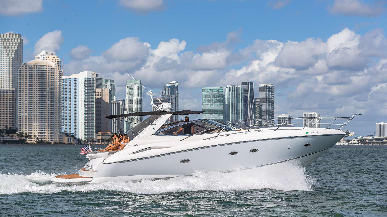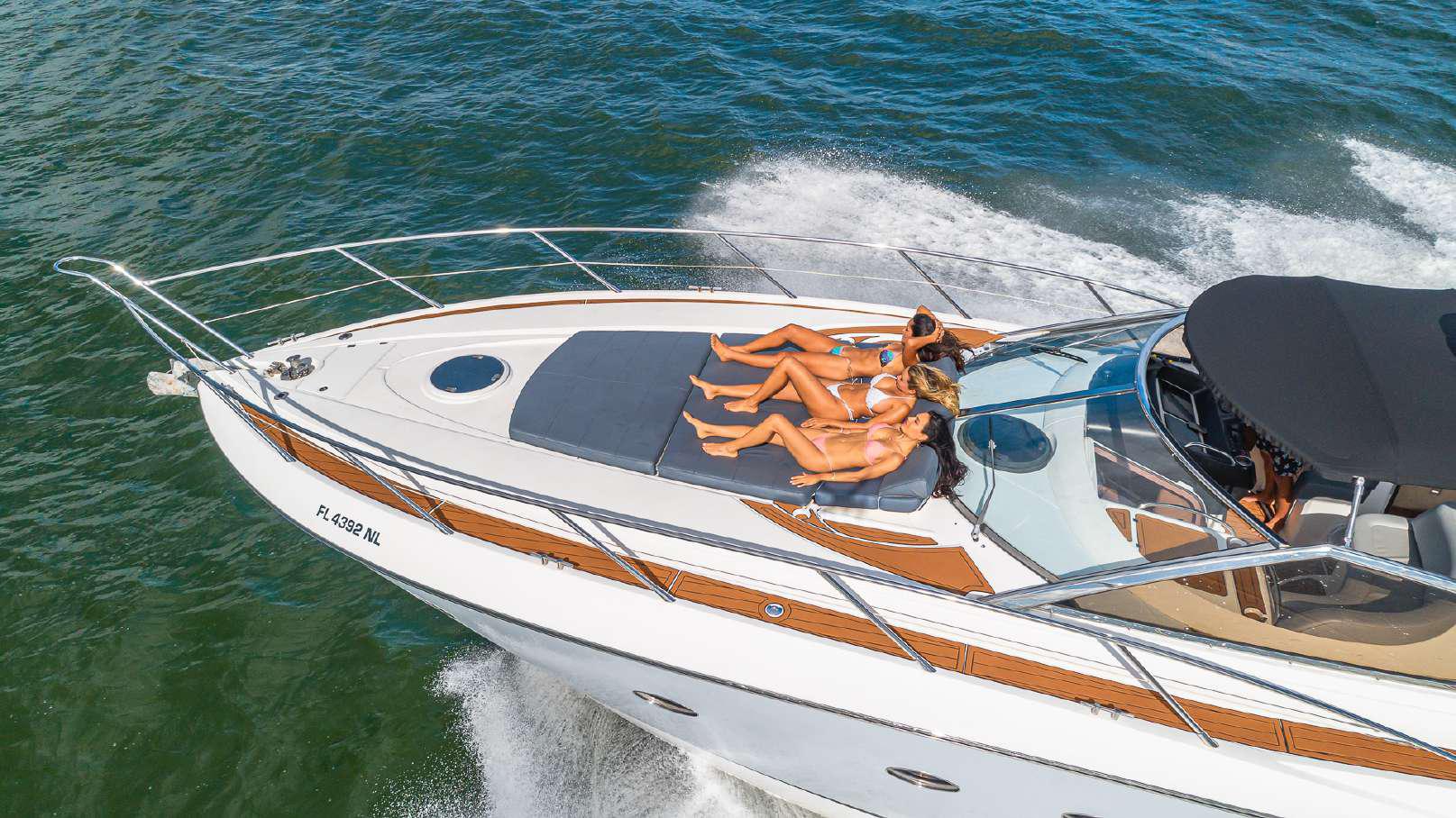 She’s an express cruiser with all the style and luxury of her namesake, Portofino, that magnificently beautiful seaside town on the Italian Riviera south of Genoa. As with all Sunseekers, the workmanship is top of the line and and the fixtures and fittings are what we’ve come to expect from this iconic brand. This yacht has a large front area for sunning and a bed lounge area on the back for relaxing as well. Well equipped below, the cabin has plenty of room for relaxing and keeping cool if you need to escape the sun. Feel how smooth she cruises through the water as you take in the sun and sights of beautiful South Florida. Perfect for day charters in Miami or even overnight to the Bahamas, she’s ready to go wherever you want to.