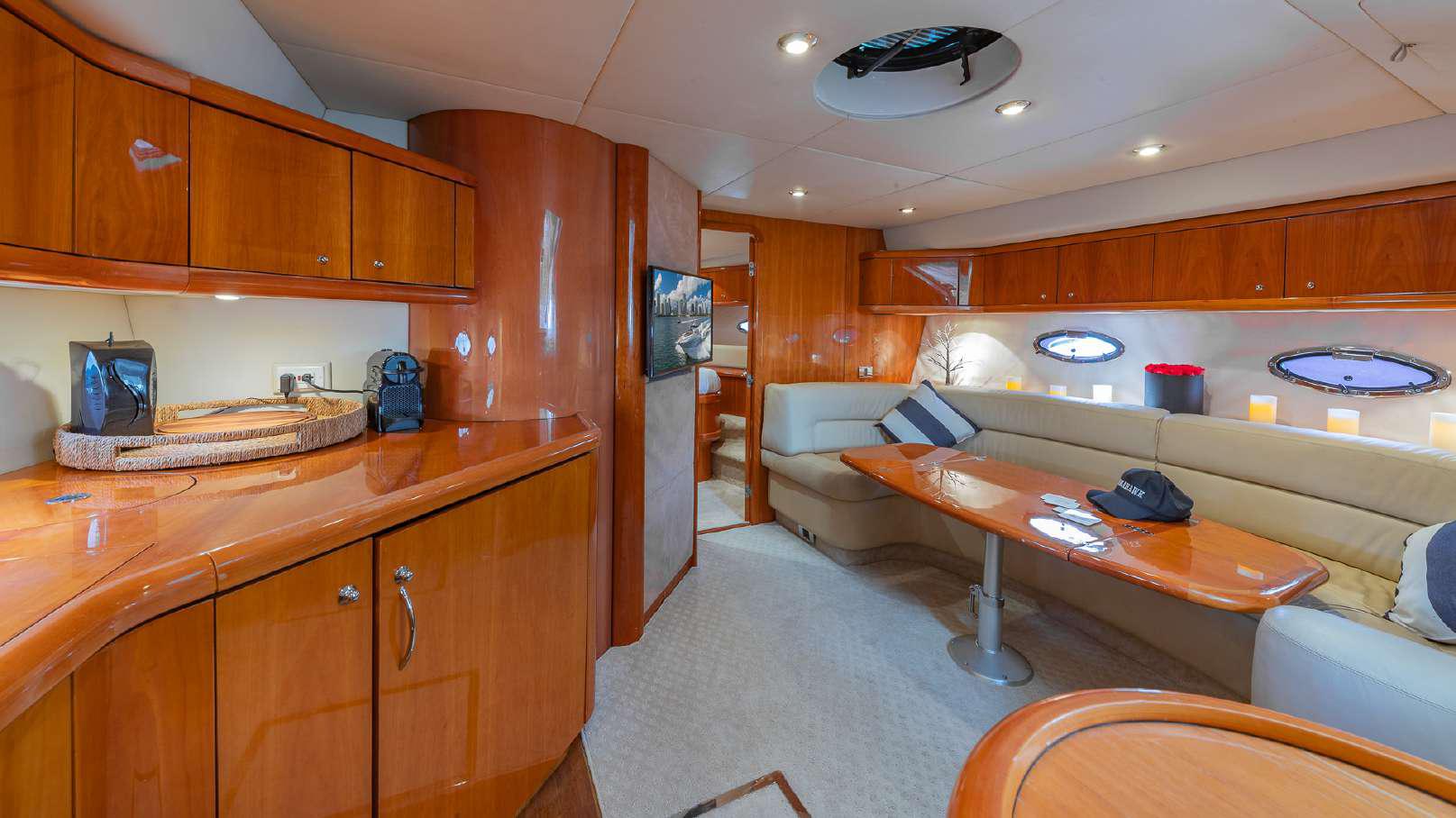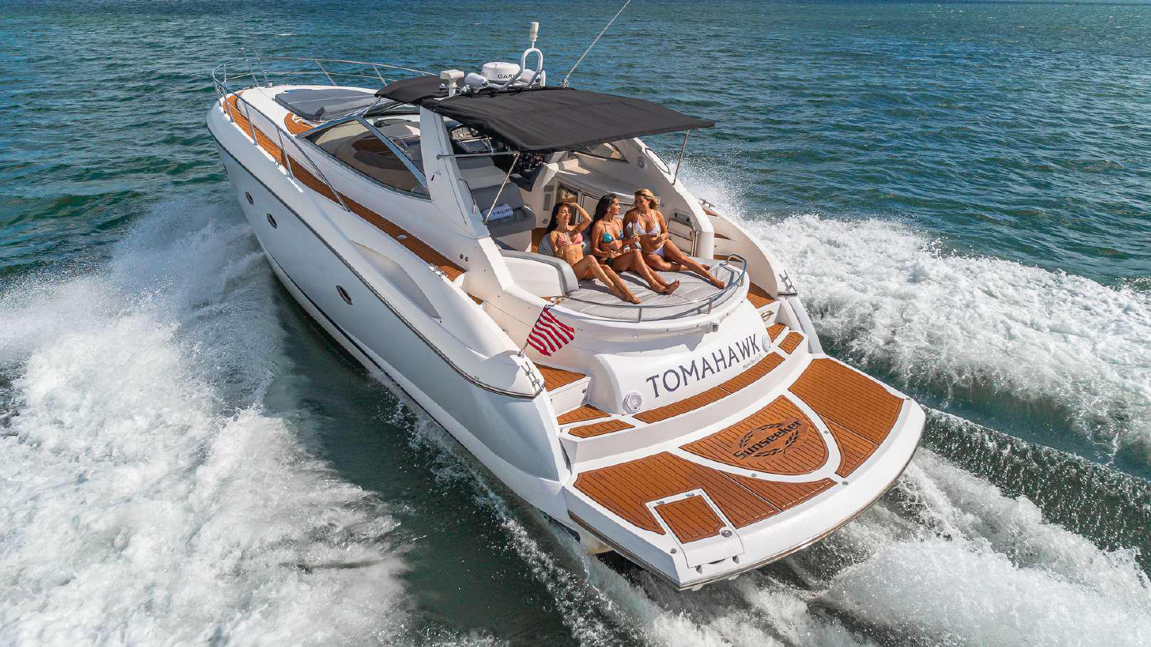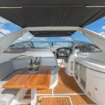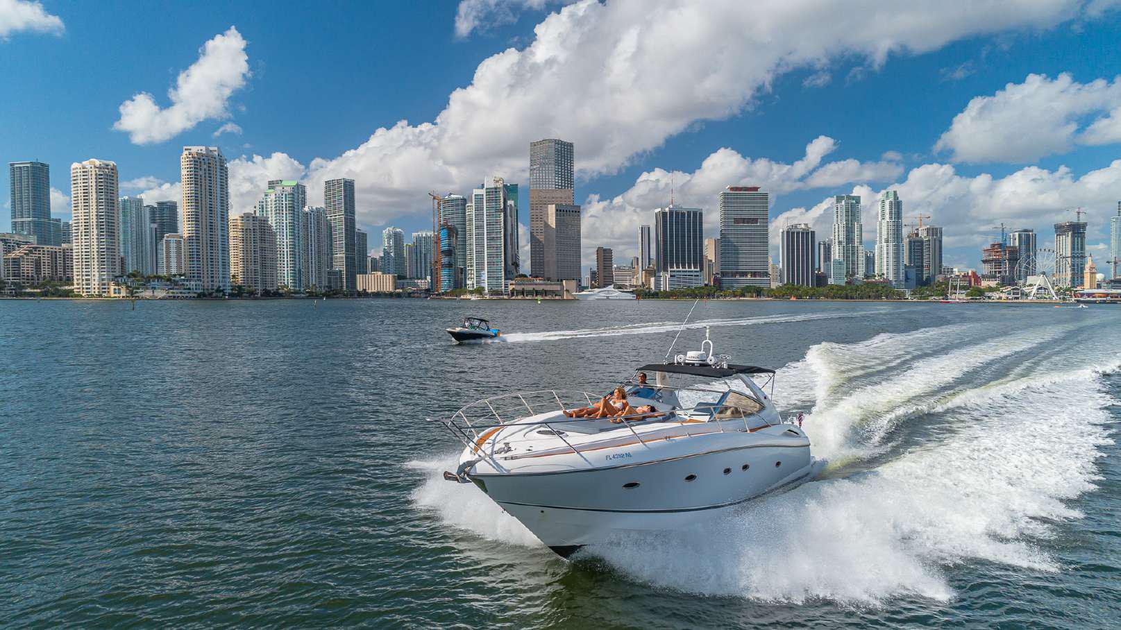 She’s an express cruiser with all the style and luxury of her namesake, Portofino, that magnificently beautiful seaside town on the Italian Riviera south of Genoa. As with all Sunseekers, the workmanship is top of the line and and the fixtures and fittings are what we’ve come to expect from this iconic brand. This yacht has a large front area for sunning and a bed lounge area on the back for relaxing as well. Well equipped below, the cabin has plenty of room for relaxing and keeping cool if you need to escape the sun. Feel how smooth she cruises through the water as you take in the sun and sights of beautiful South Florida. Perfect for day charters in Miami or even overnight to the Bahamas, she’s ready to go wherever you want to.
