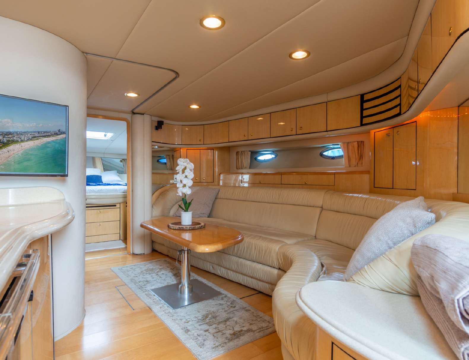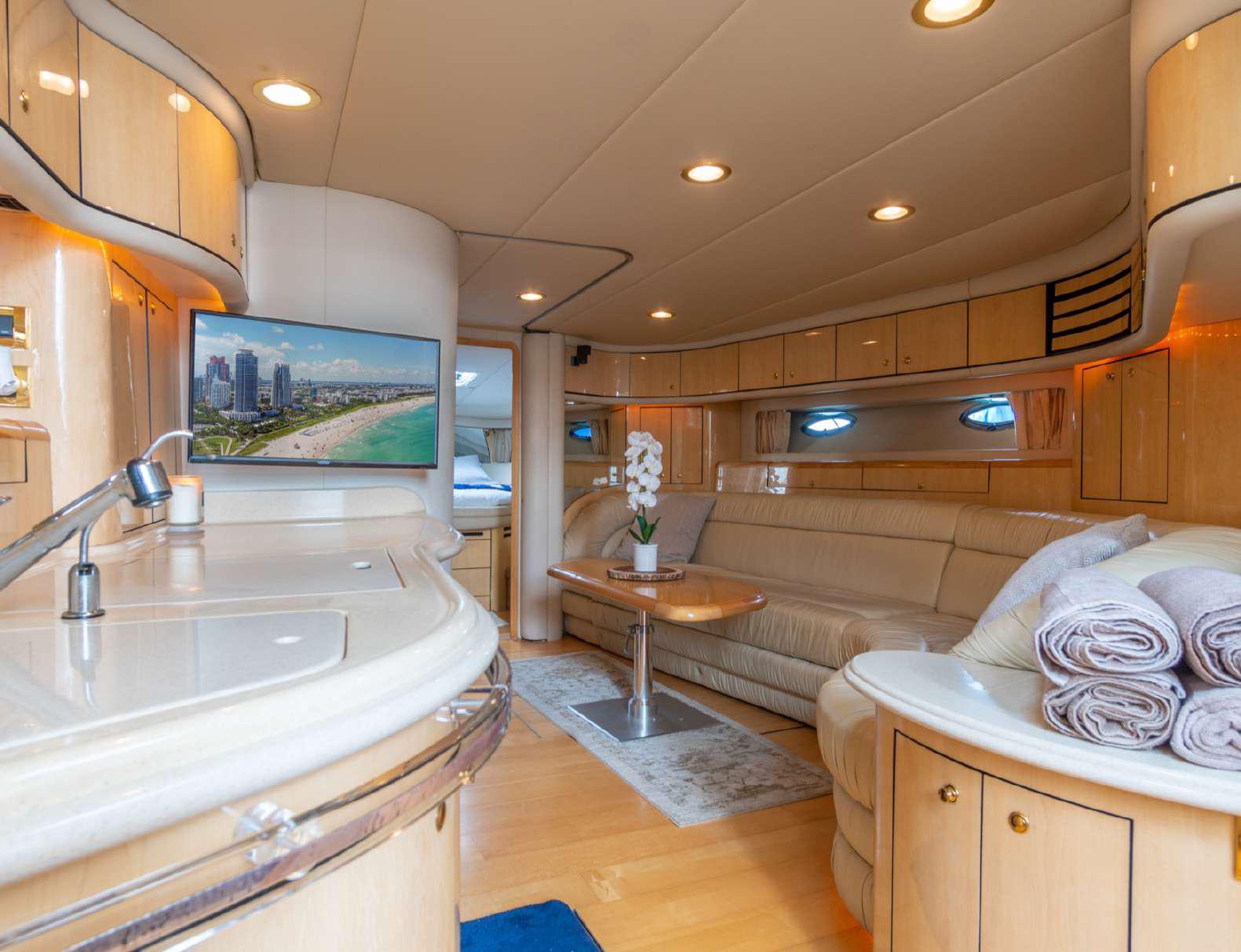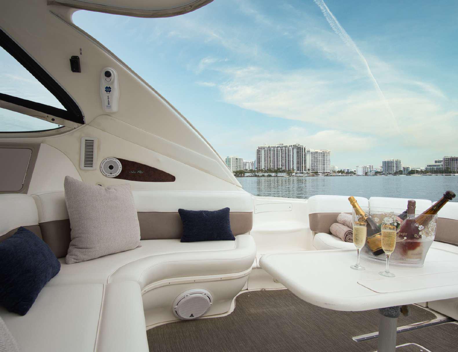THE 54 FT Sea Ray Express YACHT IS AN ALL AROUND FAVORITE BY EVERYONE WHO STEPS ABOARD. GREAT LAYOUT, SPACIOUS AND MODERN, THE YACHT IS PERFECT FOR A DAY CHARTER. WITH EXPANSIVE SEATING areas TO RELAX ON AND A NEW AMAZING SOUND SYSTEM THIS YACHT IS PERFECT TO CRUISE THE WATERS OF SOUTH FLORIDA IN. JOIN your experienced CAPTAIN AND CREW AS THEY GUIDE YOU ON AN EXCITING ADVENTURE ON THE WATERS OF MIAMI AND SOUTH BEACH.