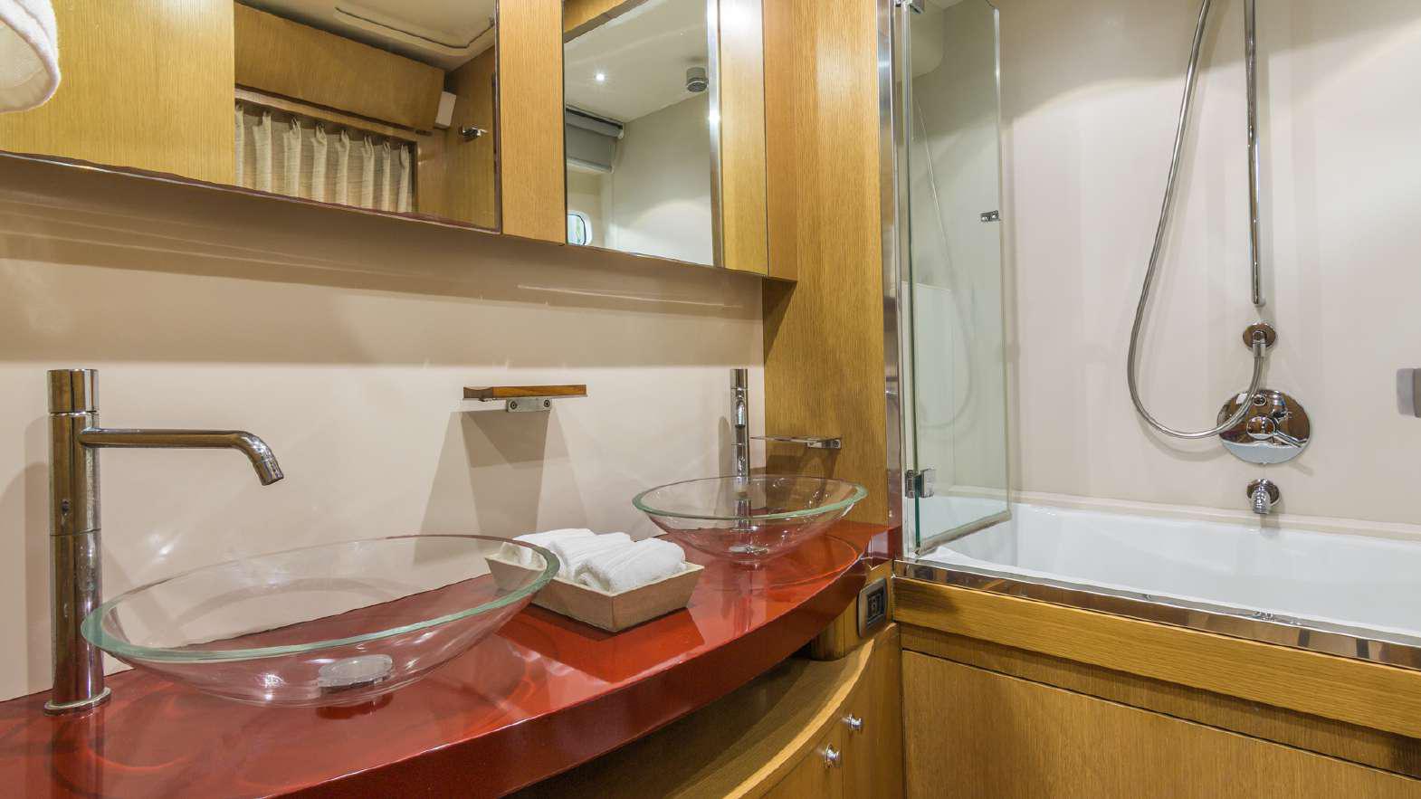 This power catamaran was built with comfort and stability in mind while offering mega yacht finishings throughout. This yacht features the kind of space and luxury appointments usually only available on a much larger yacht, with her wide beam of nearly 29 feet, you get the width typically assigned to a yacht of 120 ft in overall length. This power catamaran is the ideal choice for families and friends wishing to explore the sunny destinations of Miami, the Florida Keys or even Bimini Bahamas. This motor yacht boasts three en-suite cabins for up to 6 charter guests.