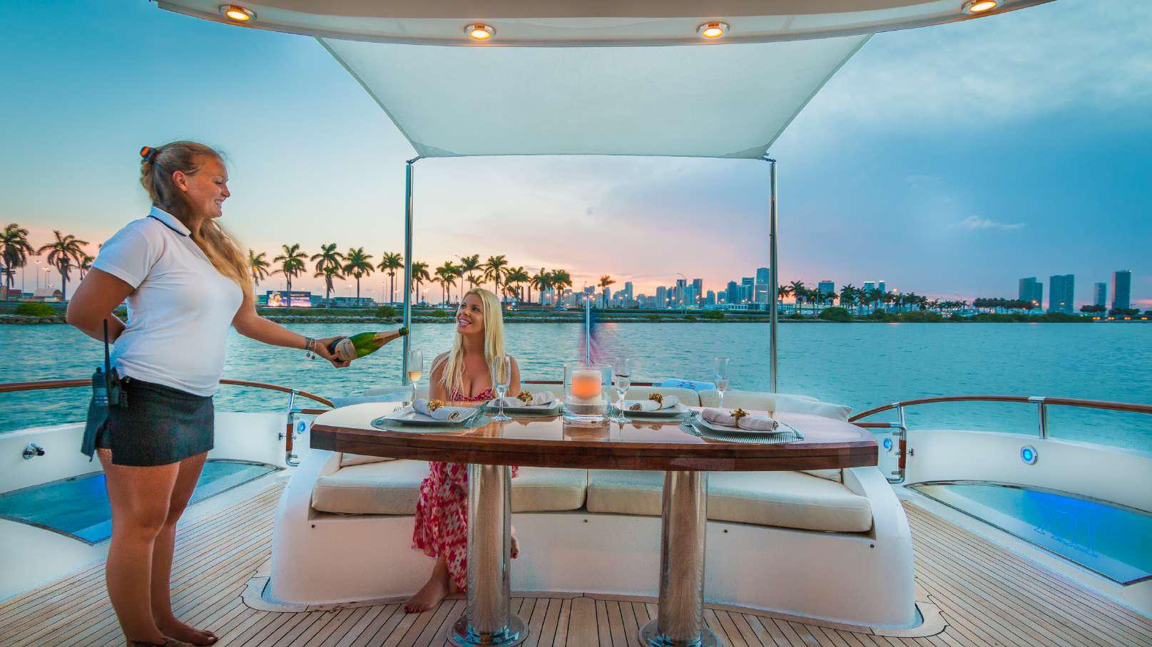 Just updated, this 75 ft Lazzara yacht is gorgeous. Light and open interior with ultra lounge vibes throughout, it is without a doubt, a perfect charter yacht for Miami. Sleek lines and and modernly sheik, experience this yacht relaxing on its large sun beds as you cruise the waters of South Beach. Vessel Capable of Carrying a Jet Ski, please inquire for AVAILABILITY of Jet Ski Usage Prior to your charter.