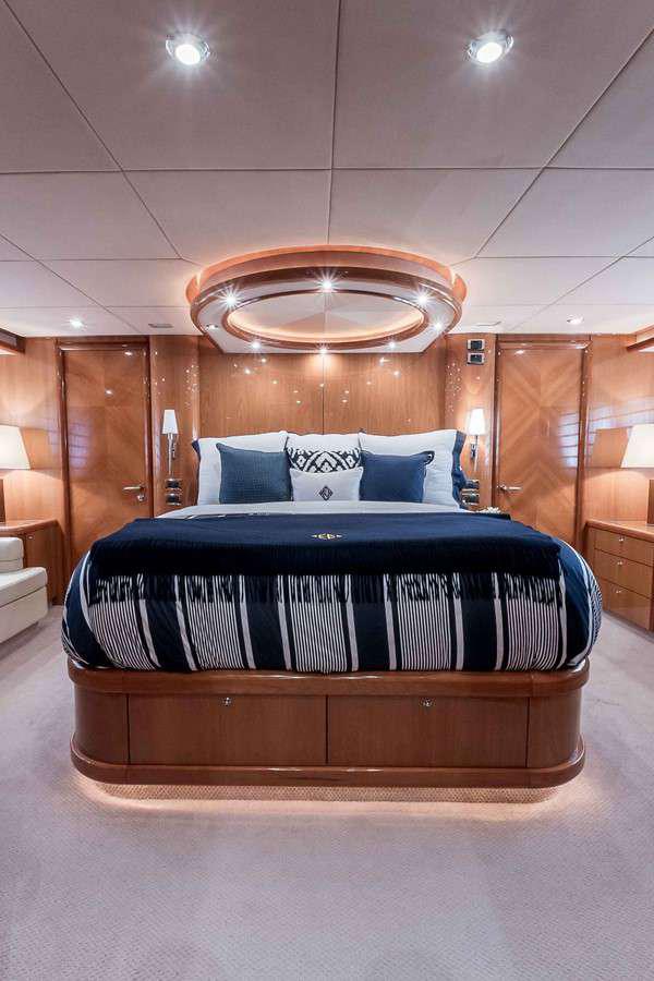 Freshly retrofit in 2018, this Sunseeker Manhattan yacht is pristine. Gorgeous dark wood hues throughout its cabins, huge upper Flybridge area and enormous bow for relaxing is without a doubt, the perfect yacht charter layout. This yacht has a four stateroom vessel with Overnight accommodations for eight guests plus separate accommodations for two crew. The spacious layout has a massive master stateroom, and very large VIP forward and two very spacious guest staterooms midships. All staterooms are equipped with plush spacious ensuite bathrooms.
