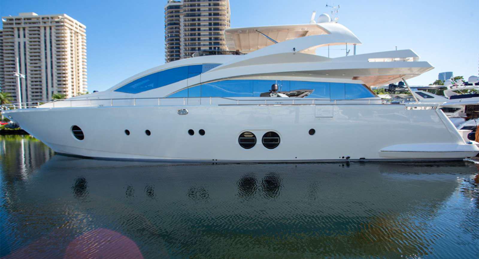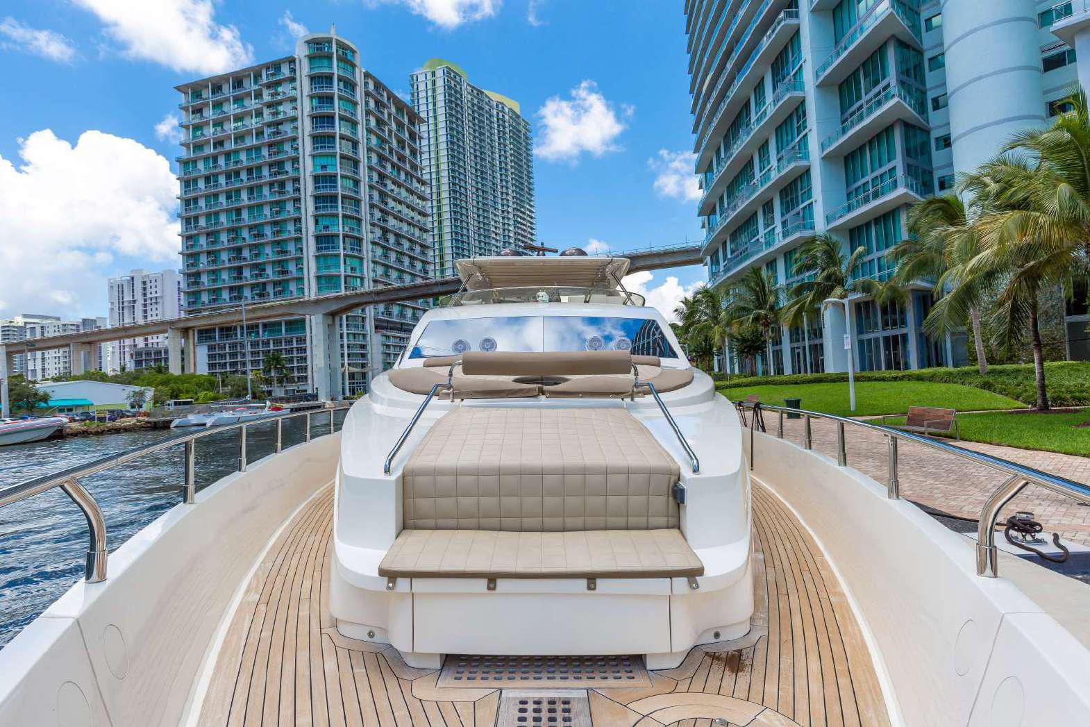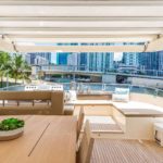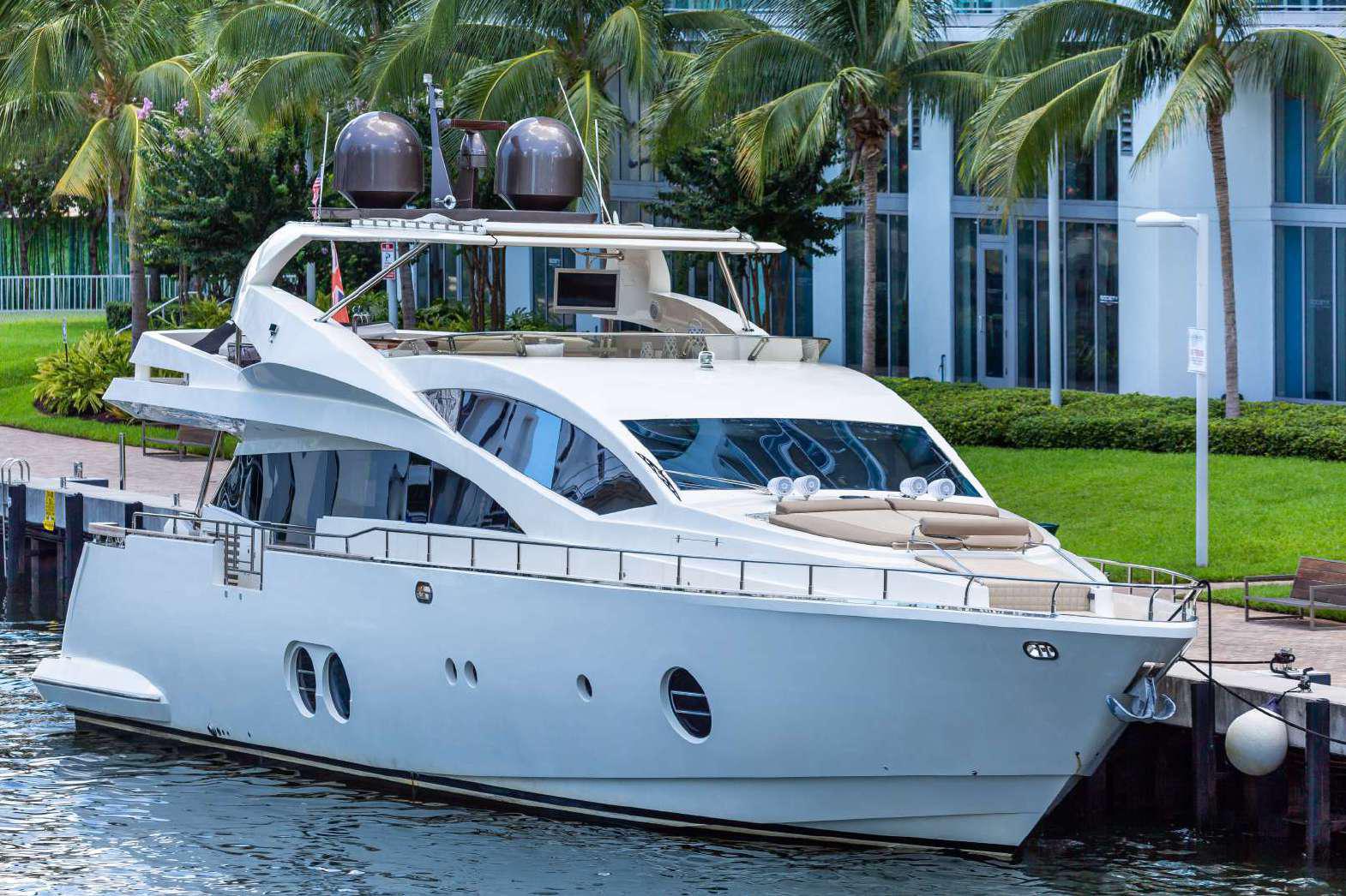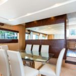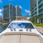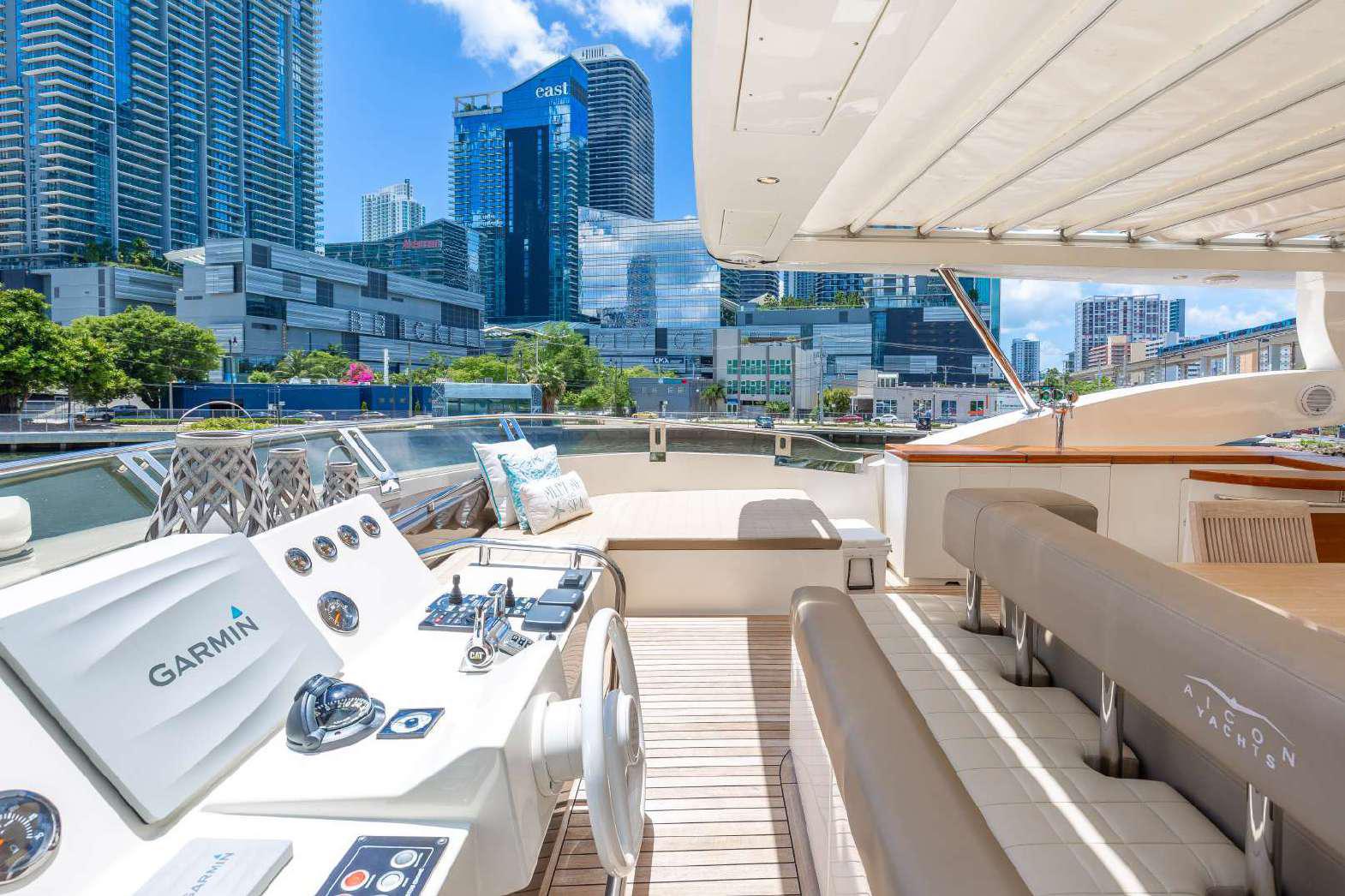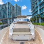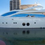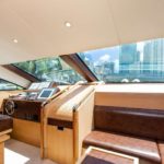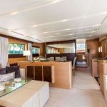 Elegance, power and unmistakable style: these are the principal characteristics of this Aicon Flybridge. This elegant yacht has flowing lines that effortlessly draw the eye, showing the fluidity and the dynamism of the design. The design of the yacht highlights the volume of the airy, geometric spaces that create a harmonious balance between the exterior and the interior resulting in a unique environment, notable for its elegance and its style. The stylish look features details such as large, rounded portholes or the large saloon window that brings you close to the sea.