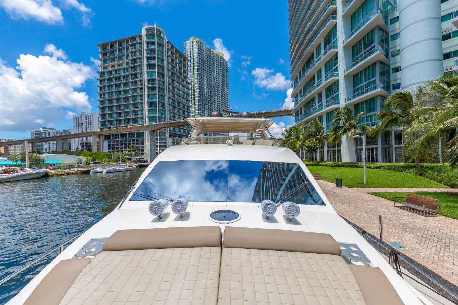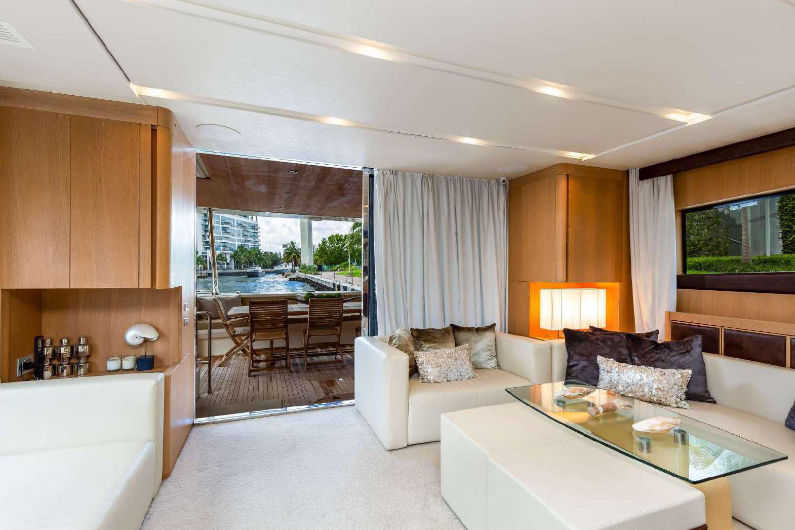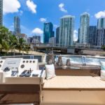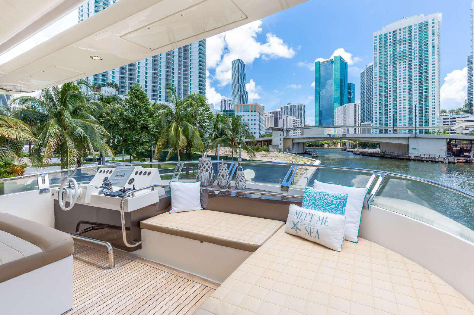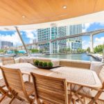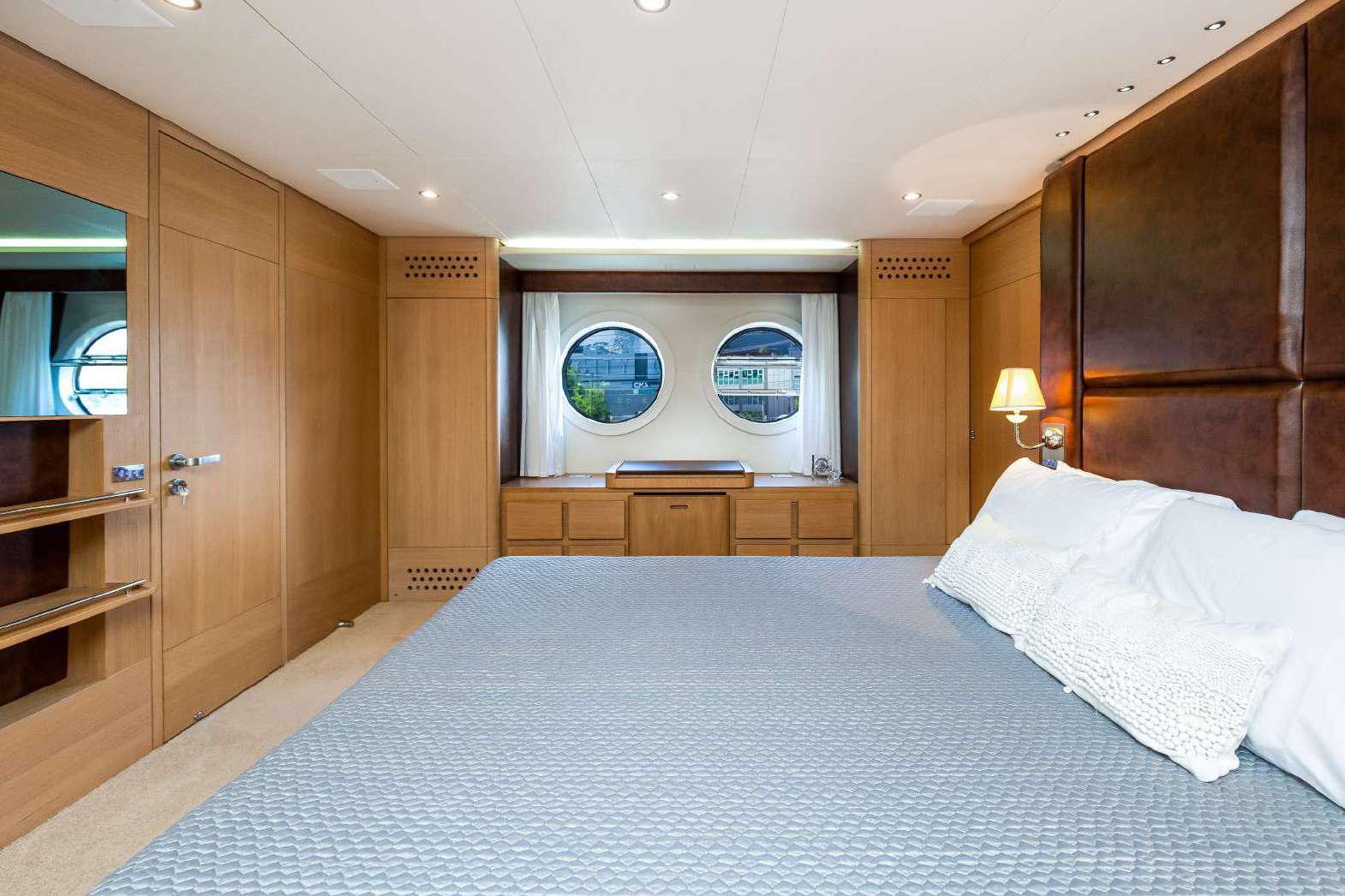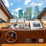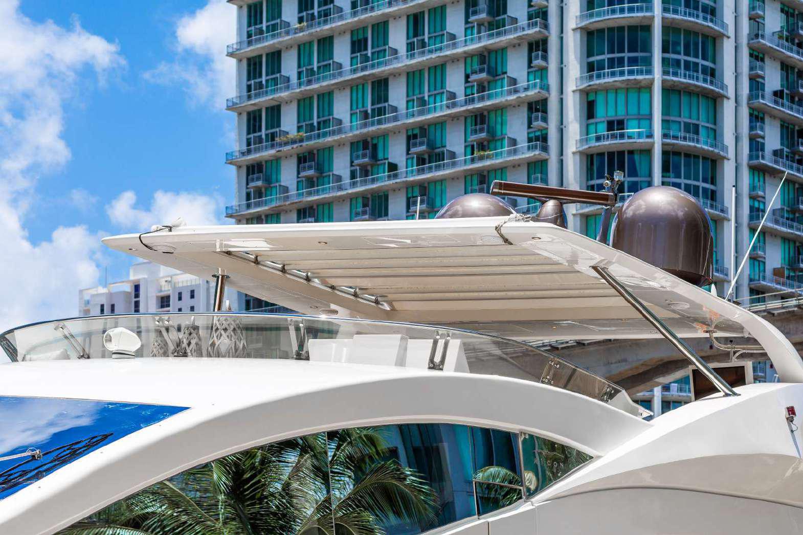 Elegance, power and unmistakable style: these are the principal characteristics of this Aicon Flybridge. This elegant yacht has flowing lines that effortlessly draw the eye, showing the fluidity and the dynamism of the design. The design of the yacht highlights the volume of the airy, geometric spaces that create a harmonious balance between the exterior and the interior resulting in a unique environment, notable for its elegance and its style. The stylish look features details such as large, rounded portholes or the large saloon window that brings you close to the sea.