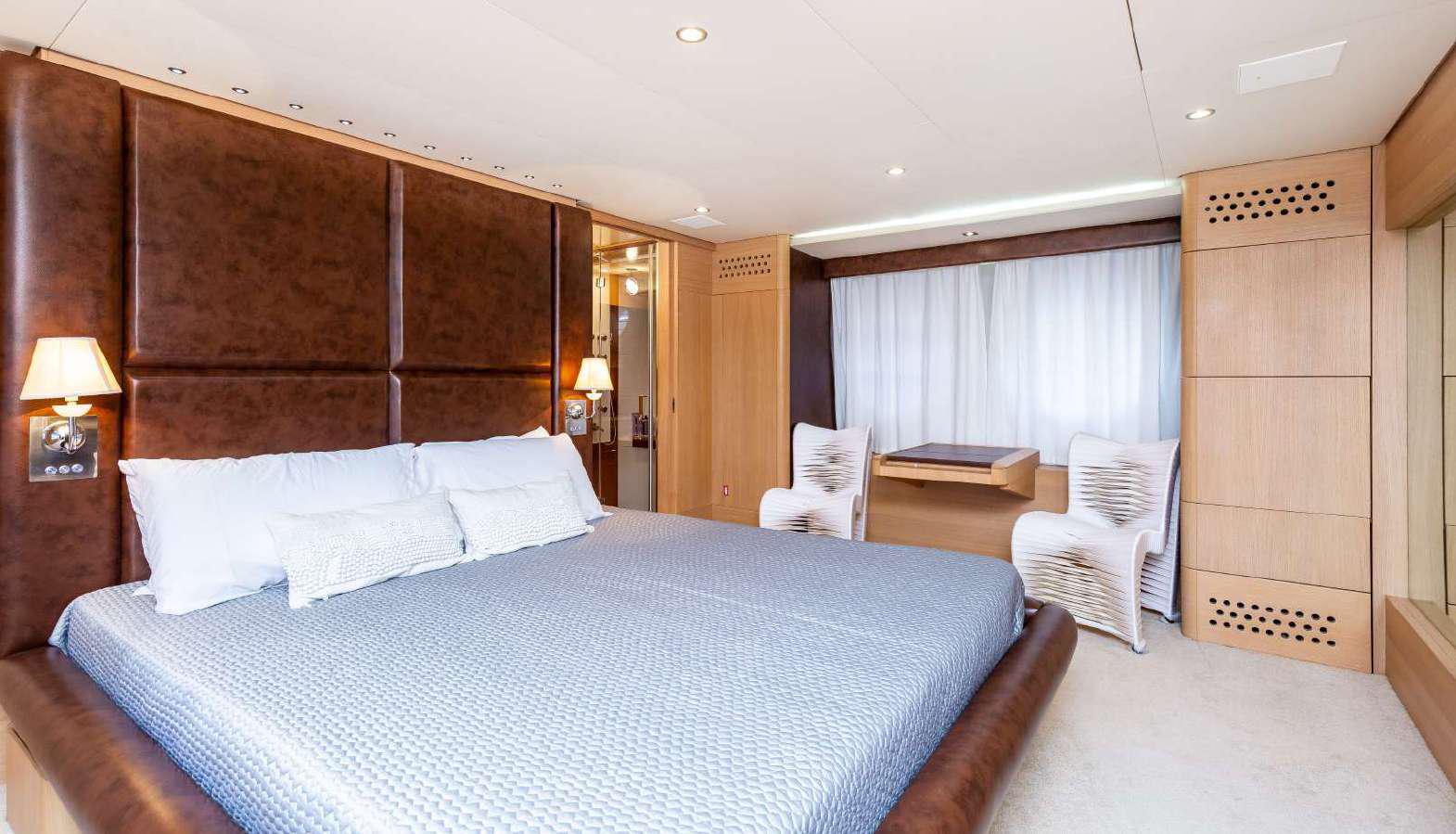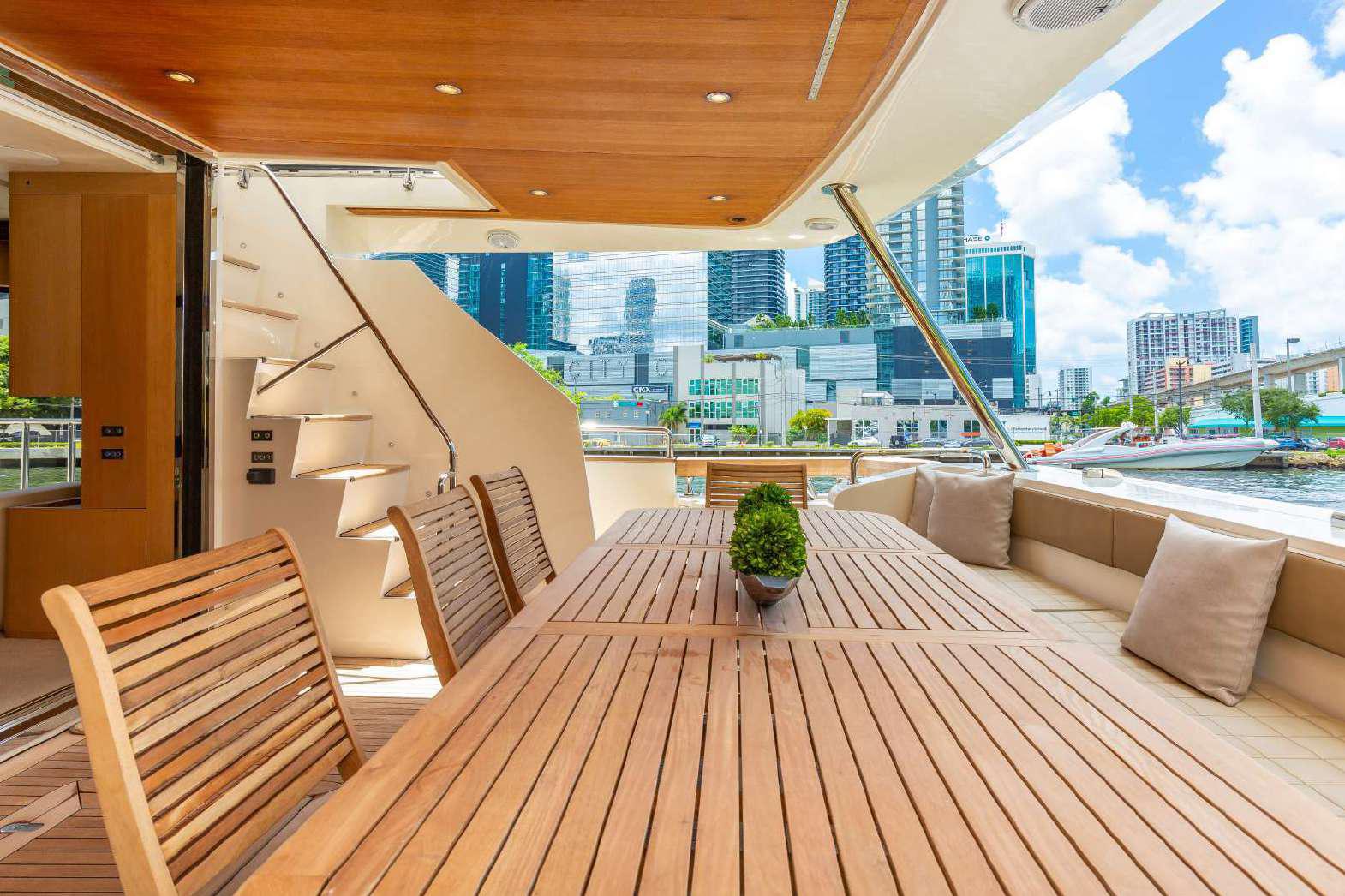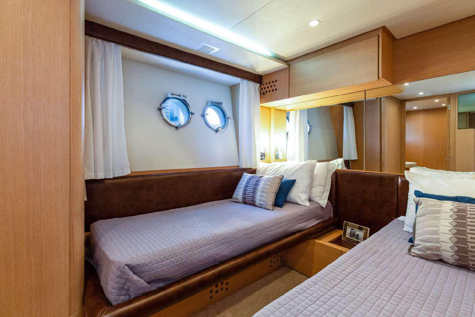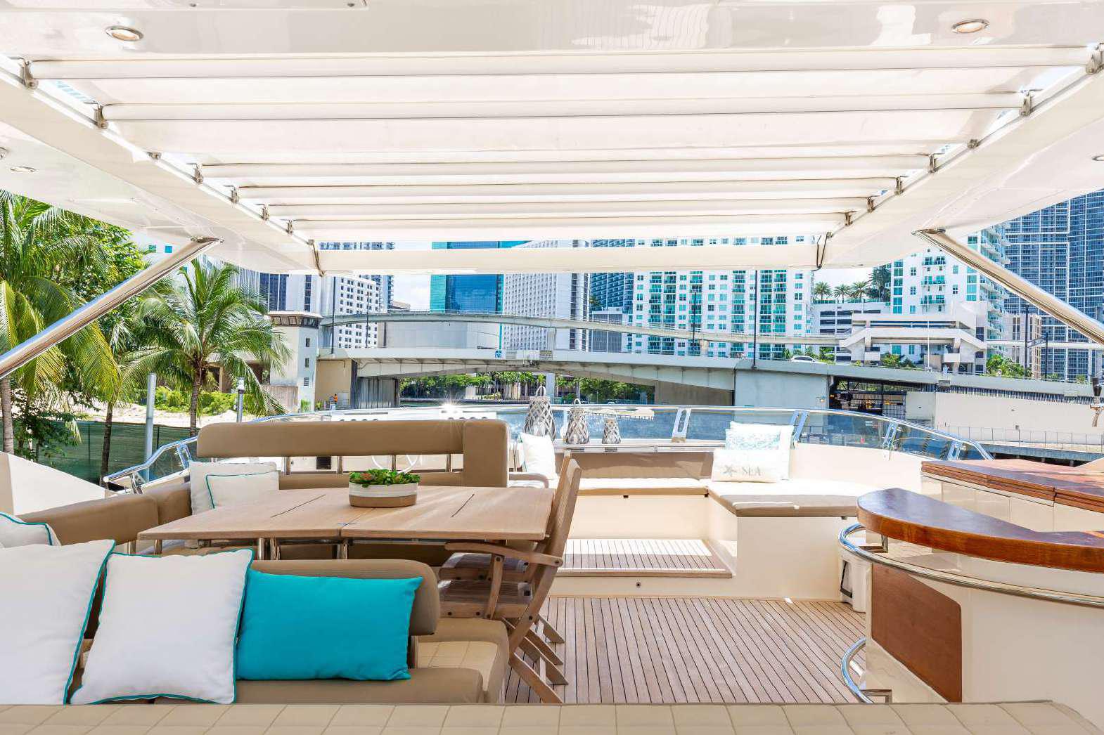Elegance, power and unmistakable style: these are the principal characteristics of this Aicon Flybridge. This elegant yacht has flowing lines that effortlessly draw the eye, showing the fluidity and the dynamism of the design. The design of the yacht highlights the volume of the airy, geometric spaces that create a harmonious balance between the exterior and the interior resulting in a unique environment, notable for its elegance and its style. The stylish look features details such as large, rounded portholes or the large saloon window that brings you close to the sea.