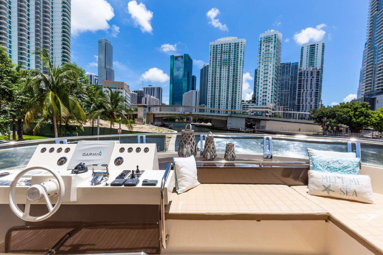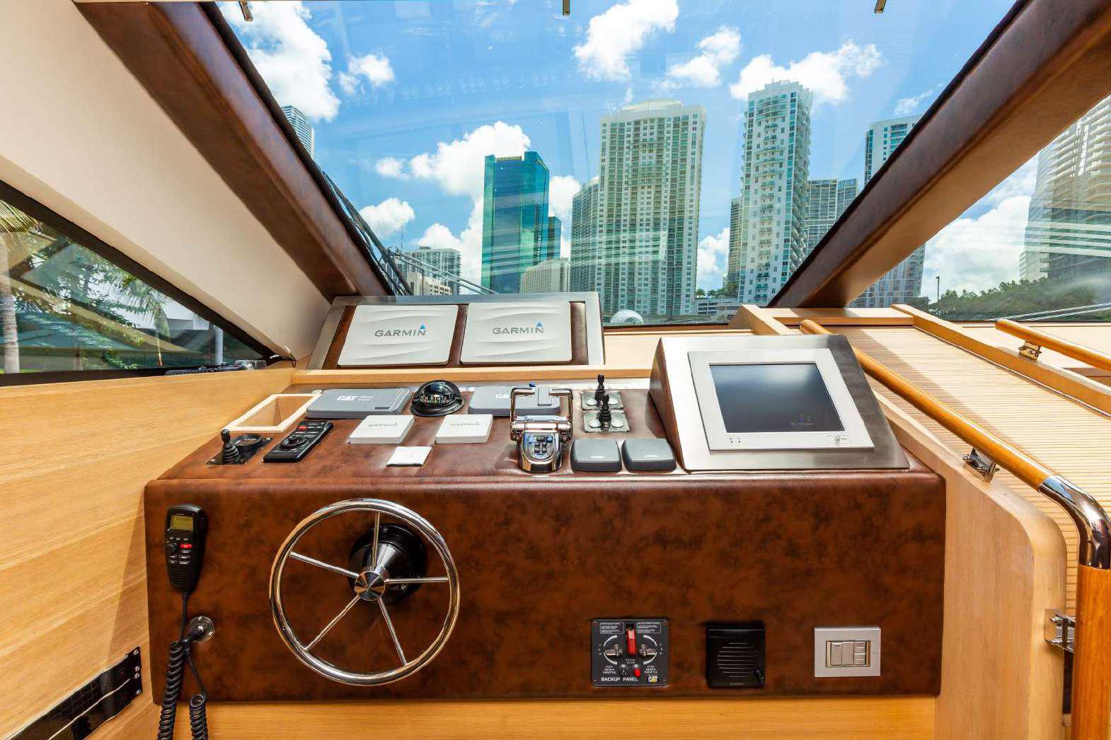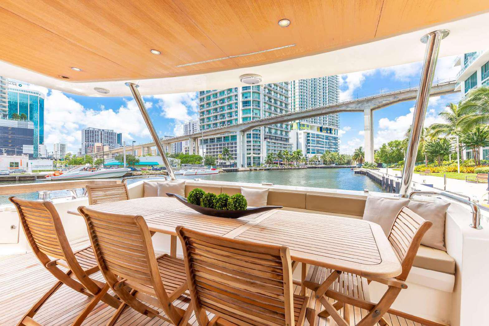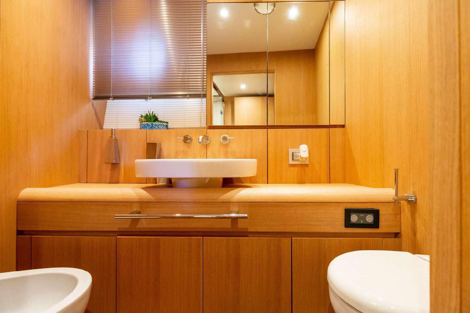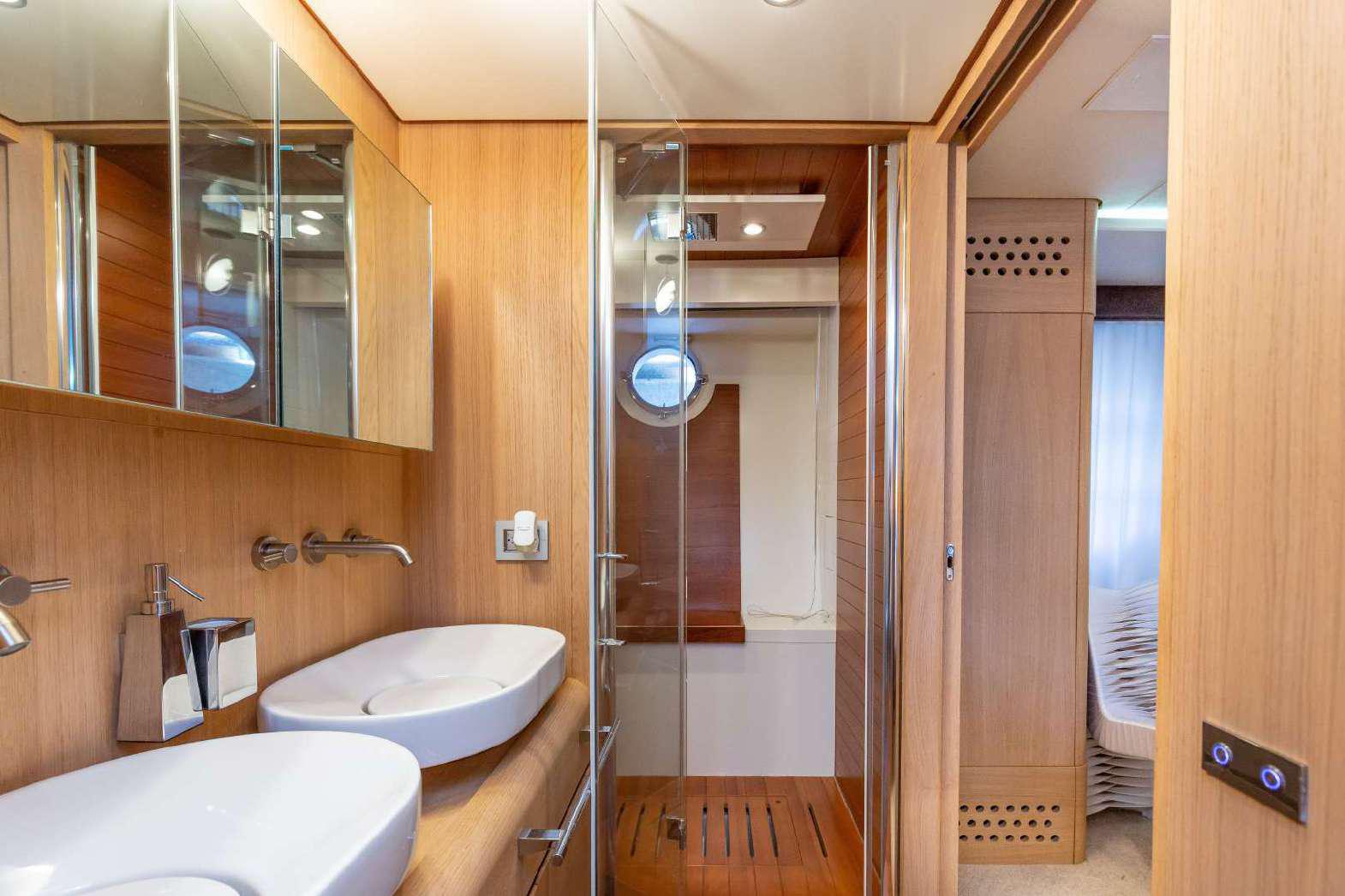Elegance, power and unmistakable style: these are the principal characteristics of this Aicon Flybridge. This elegant yacht has flowing lines that effortlessly draw the eye, showing the fluidity and the dynamism of the design. The design of the yacht highlights the volume of the airy, geometric spaces that create a harmonious balance between the exterior and the interior resulting in a unique environment, notable for its elegance and its style. The stylish look features details such as large, rounded portholes or the large saloon window that brings you close to the sea.